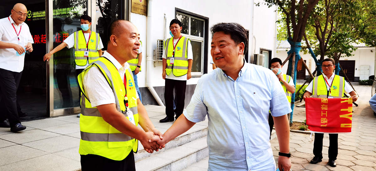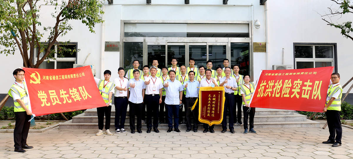 202184日,河南省聯通公司總經理童海波、副總經理王宜科、資產運營部總經理孫海青、綜合部總經理馬靈一行,蒞臨我公司慰問調研并贈送榮譽錦旗。童總對我公司在近期抗洪搶險中保障河南聯通網絡做出的貢獻給予了充分的肯定和感謝。